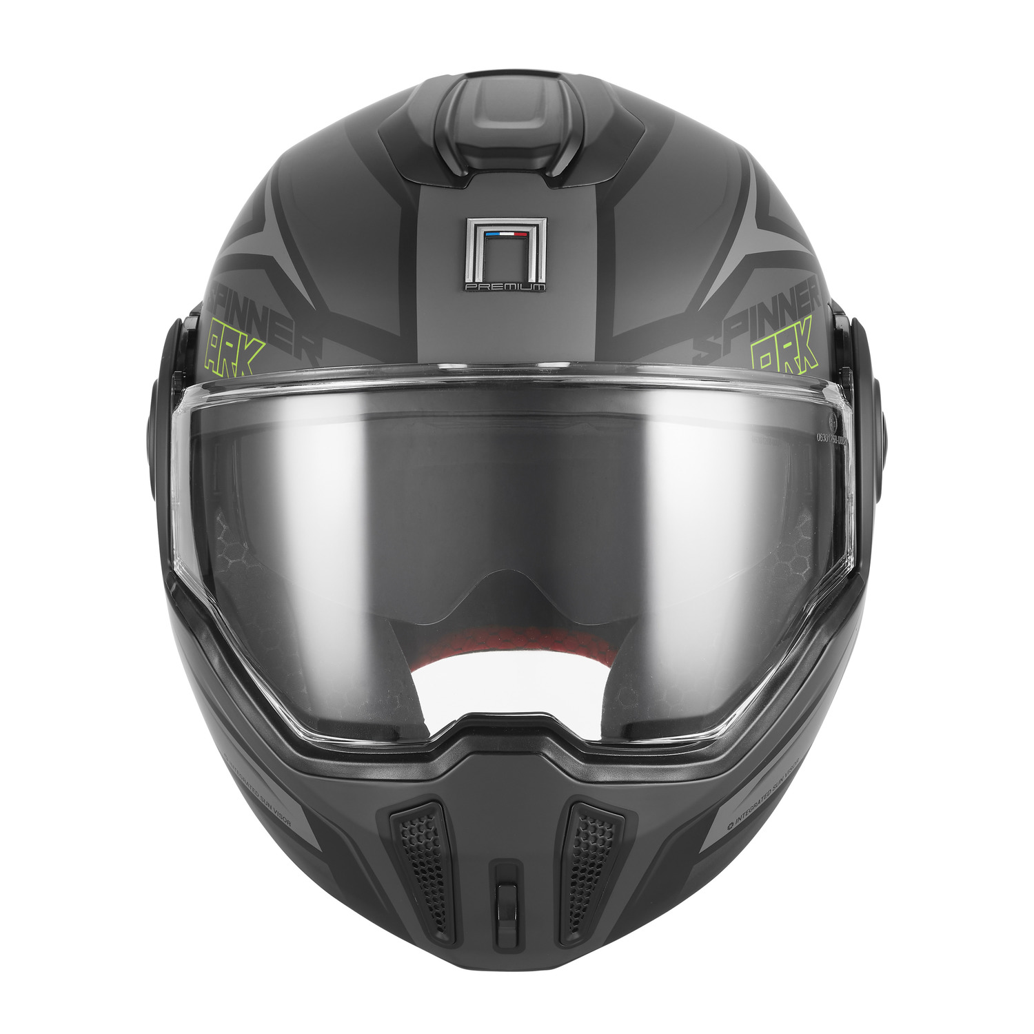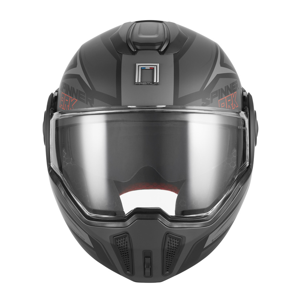 SPINNER je úplne nová výklopná prilba radu NOX PREMIUM s možnosťou preklopenia bradovej časti dozadu.