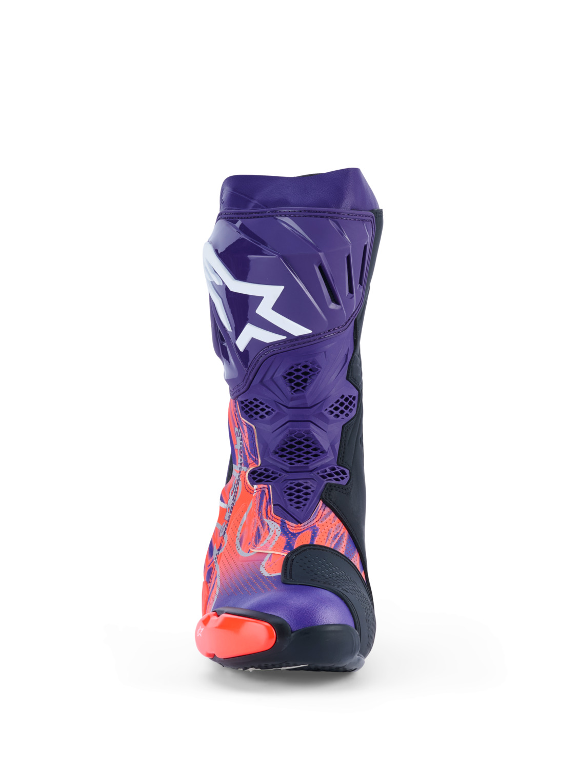Takmer každý diel aktuálnej verzie topánok SUPERTECH R prešiel komplexnou procedúrou úprav vo vývoji, ktoré posúvajú tento ikonický model topánok ešte vyššie. Vďaka odozvám od top jazdcov podporovaných značkou ALPINESTARS, boli topánky upravené v kľúčových oblastiach: predná pružná časť v úrovni priehlavku, nová konštrukcia streč panelu v zadnej časti topánky, vstupná manžeta, nový panel radičky a protektor holene vr. bočného slidera holene. V neposlednom rade prešla úpravami vnútorná vyberateľná topánočka. Všetky spomínané časti boli vylepšené za účelom poskytnutia vyššieho štandardu ochrany a komfortu. Verzia VENTED s perforovanou obšívkou pre zvýšenú priedušnosť a ventiláciu. Topánky sú CE certifikované.